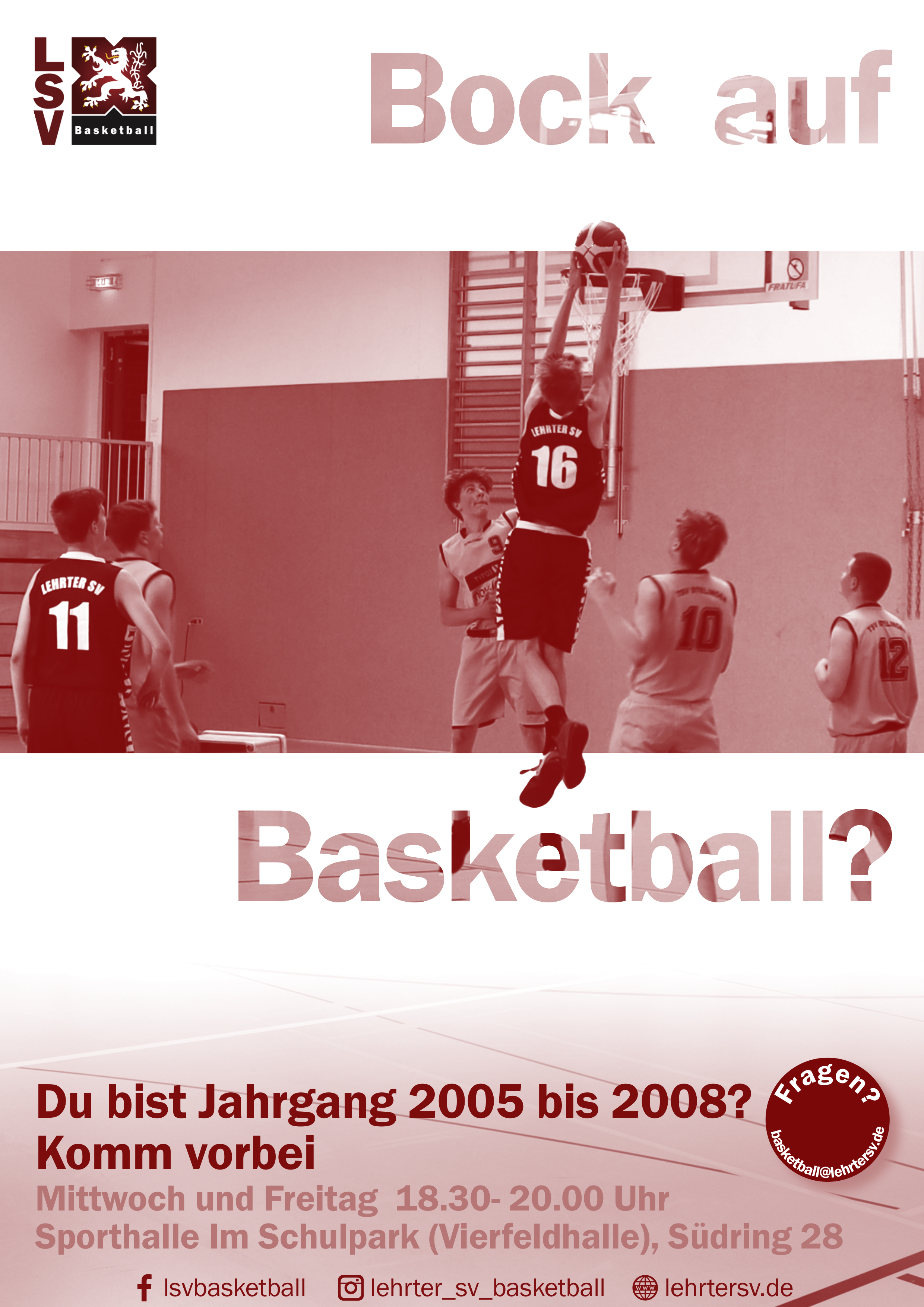 Ihr wollt Basketball ausprobieren? Habt Bock auf Dribblings und Würfe? Kommt vorbei. Wir suchen Nachwuchs in den Jahrgängen 2005-2008.